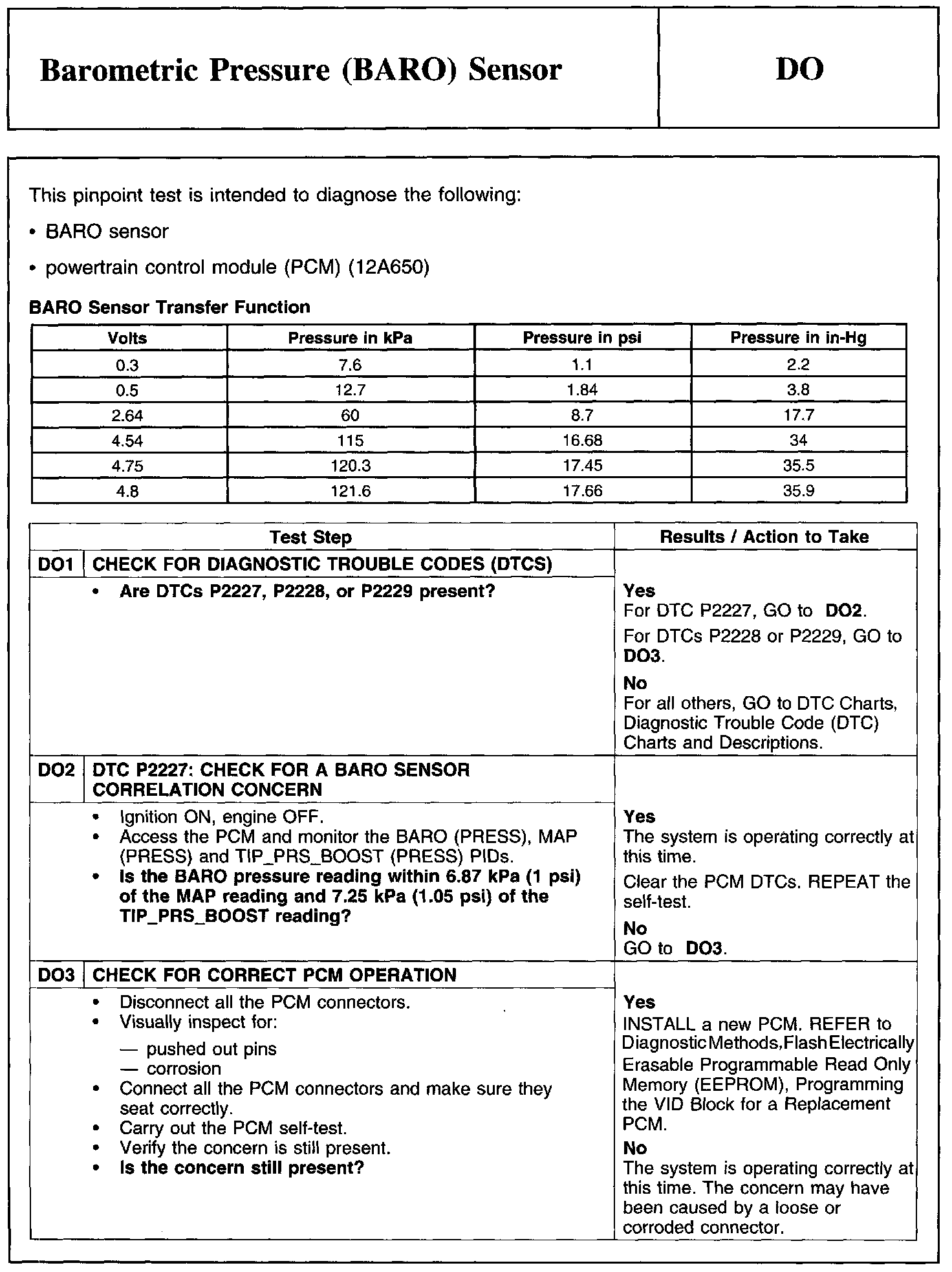 PINPOINT TEST DO: BAROMETRIC PRESSURE (BARO) SENSOR