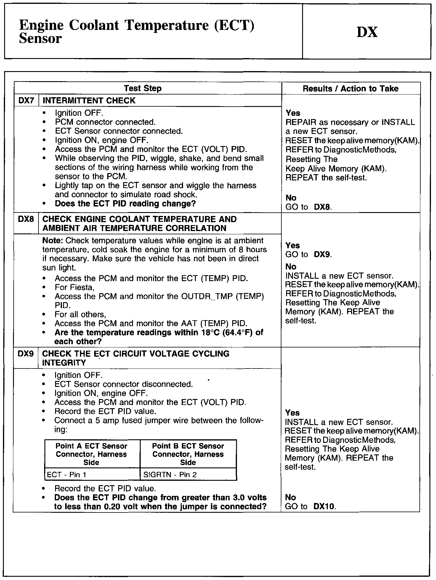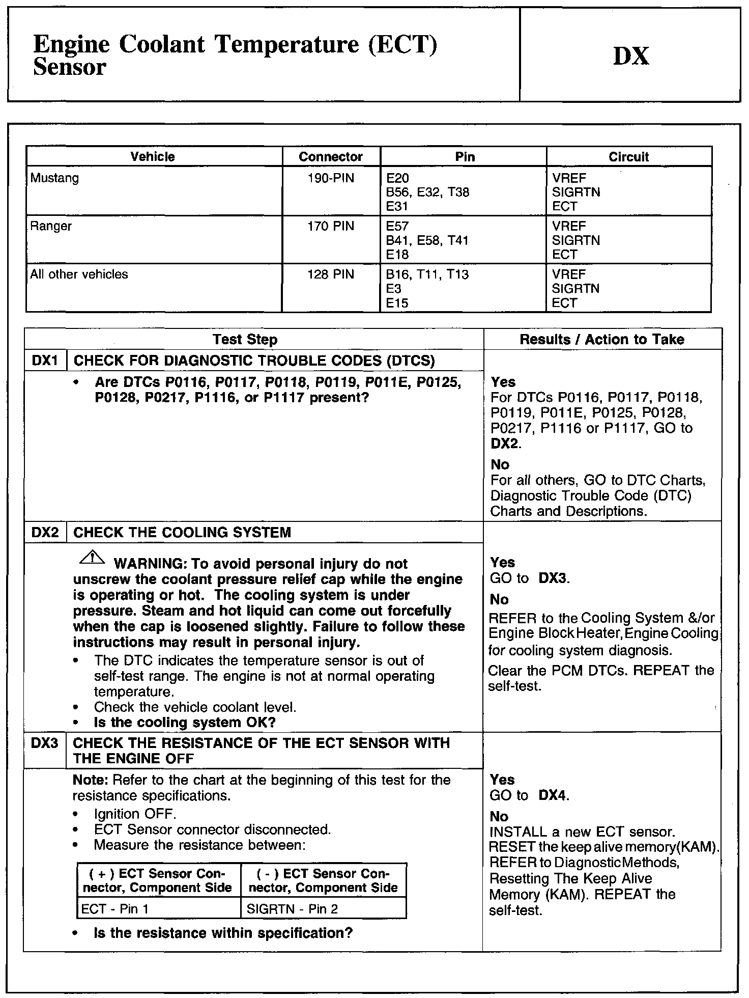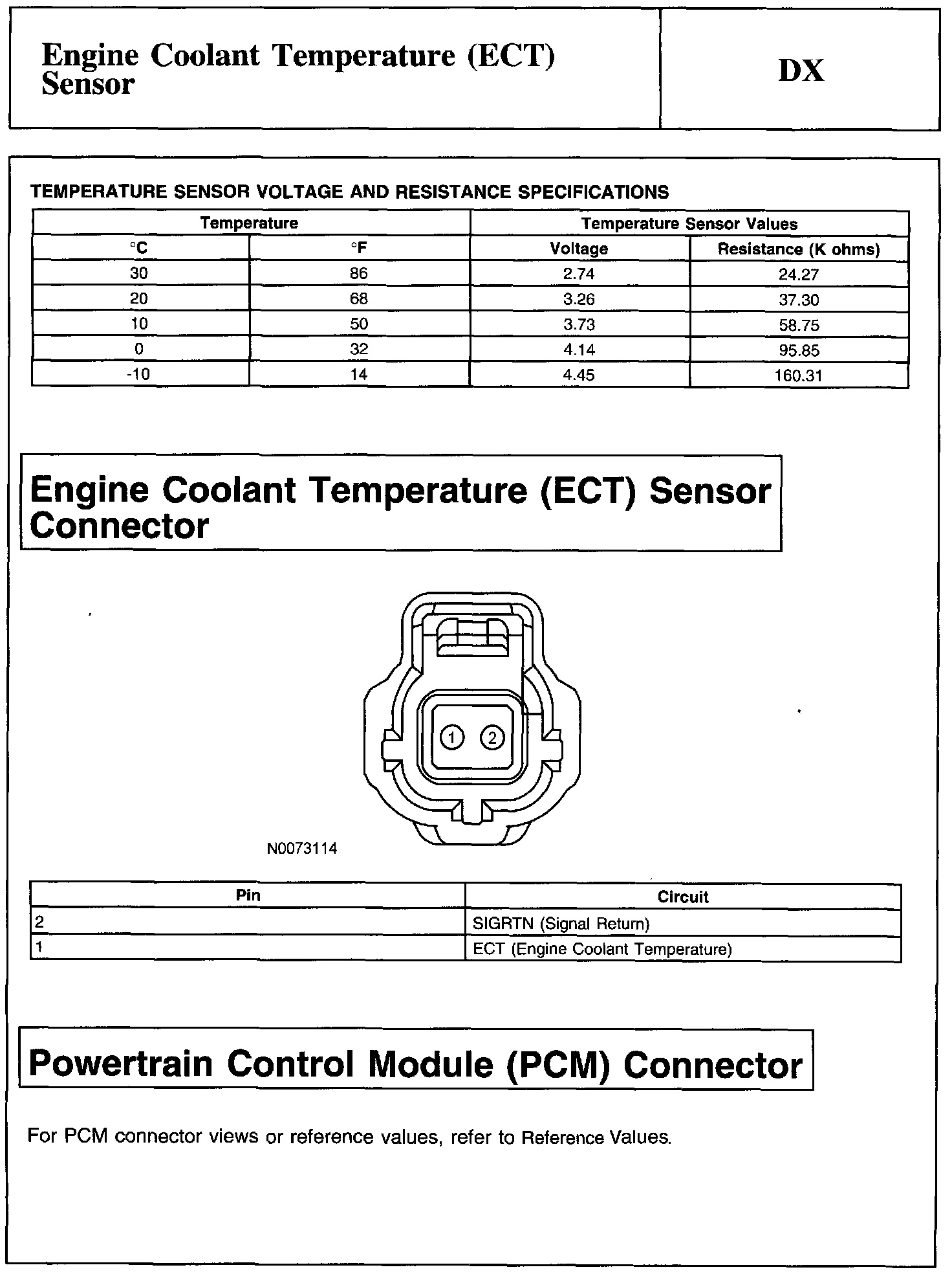 Test DX: Engine Coolant Temperature (ECT) Sensor
