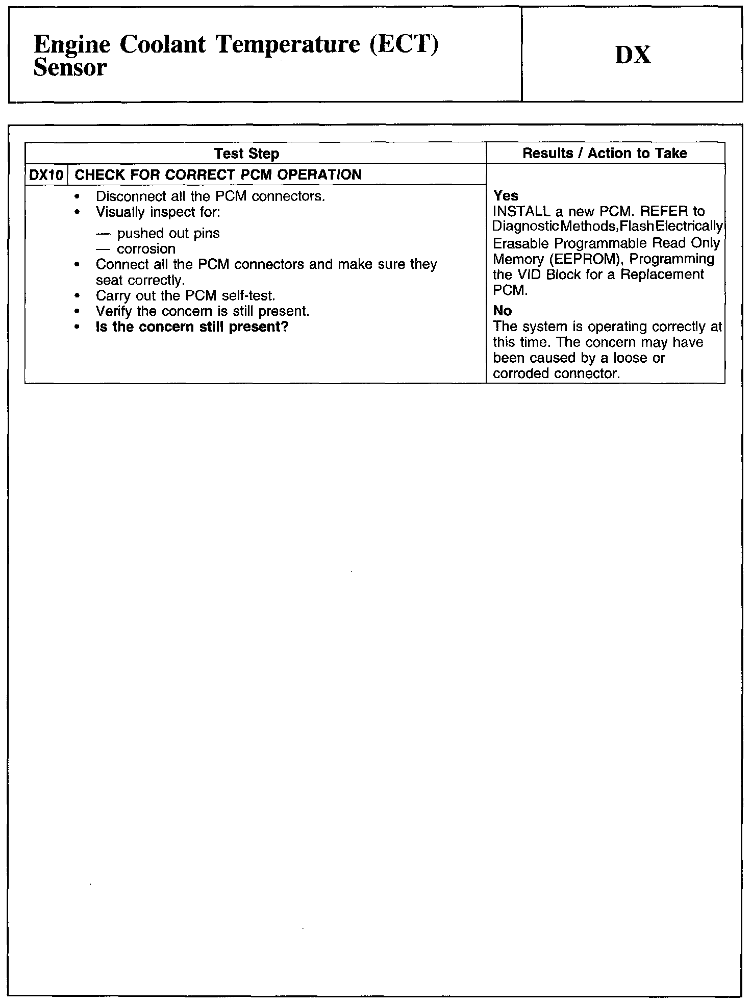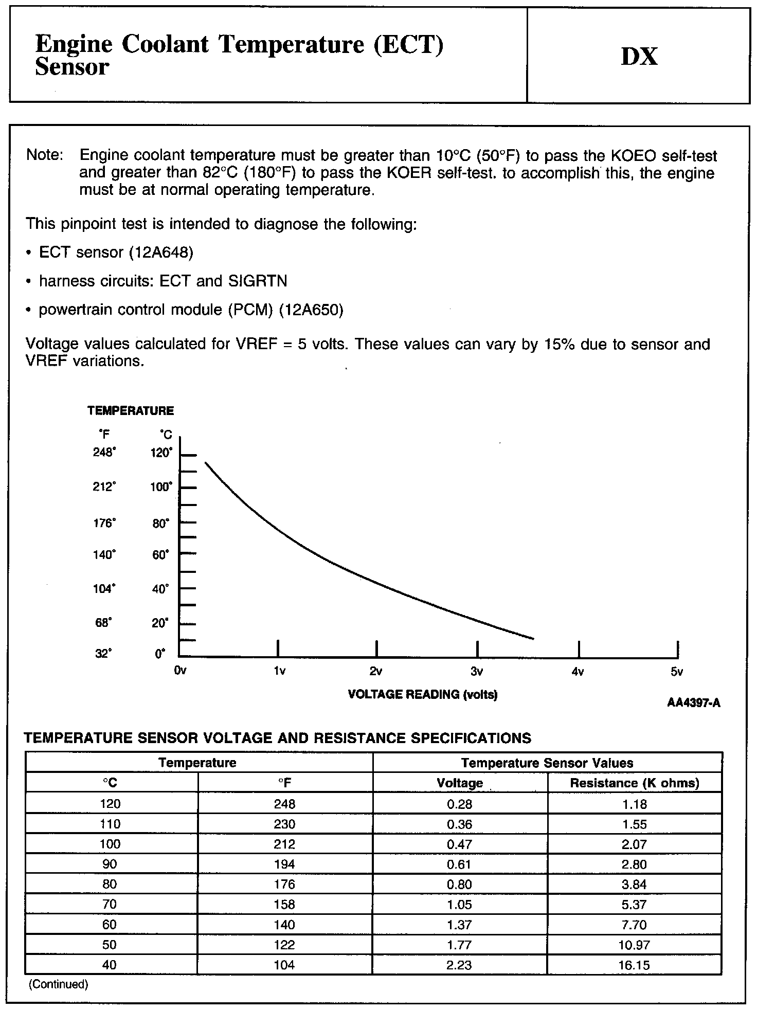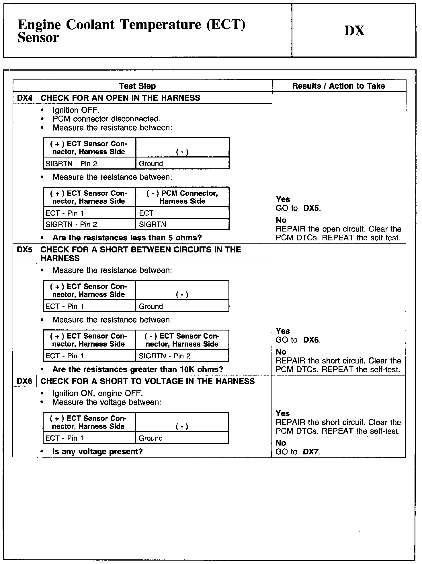 Test DX: Engine Coolant Temperature (ECT) Sensor