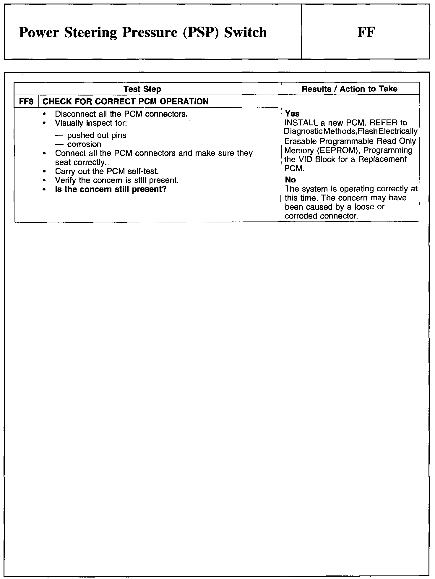 Test FF: Power Steering Pressure (PSP) Switch