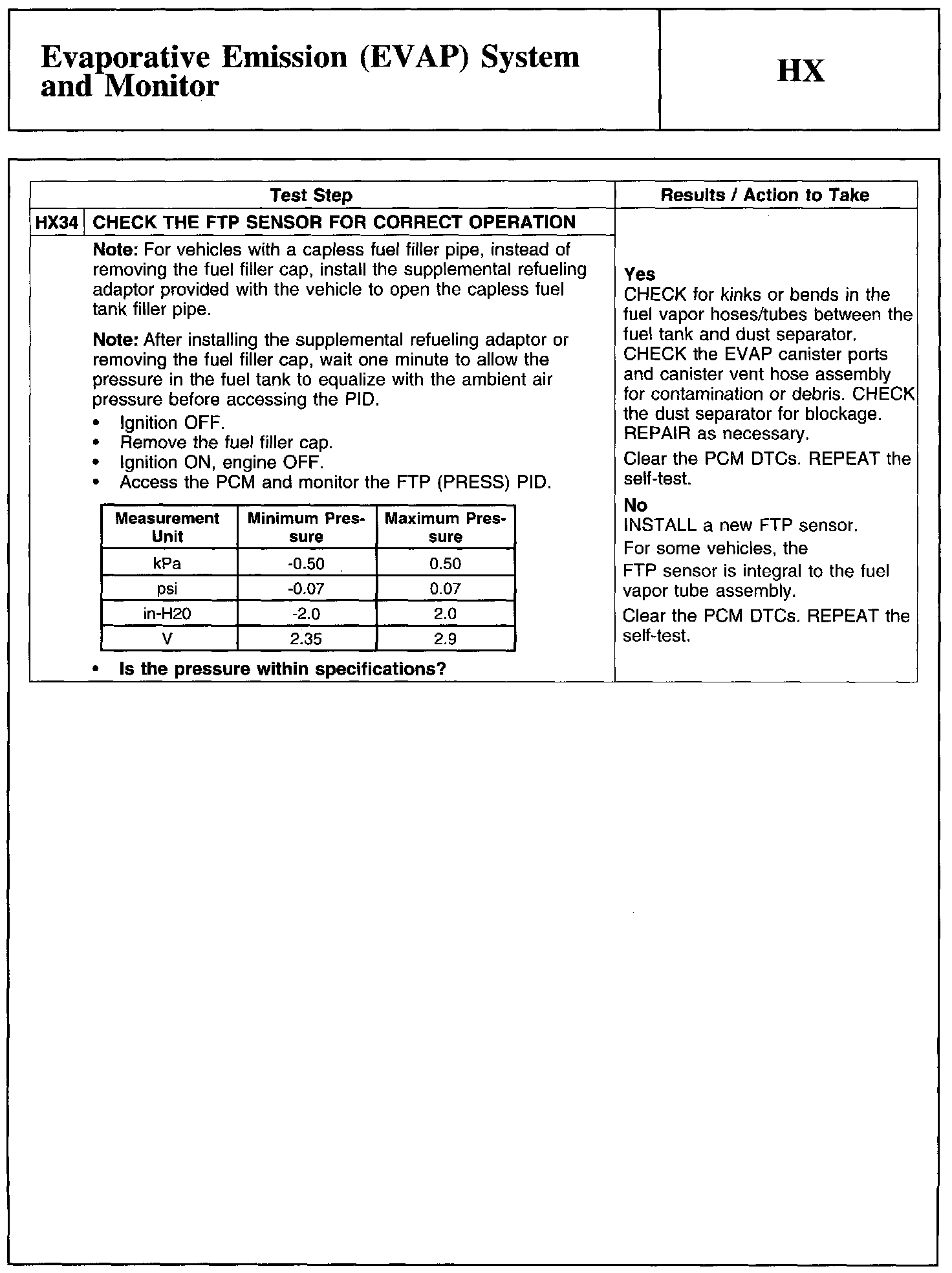 PINPOINT TEST HX: EVAPORATIVE EMISSION (EVAP) SYSTEM AND MONITORWarnings And Note:
