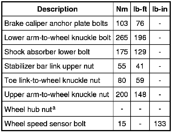 Torque Specifications