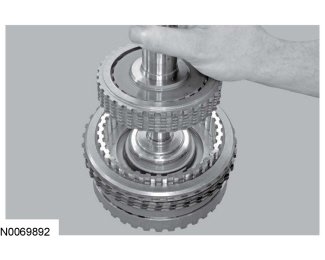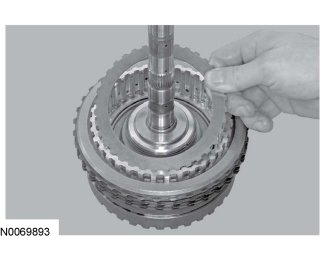 24. Clean and inspect the overdrive/direct clutch hub and shaft assembly for damage. Install new, if necessary.