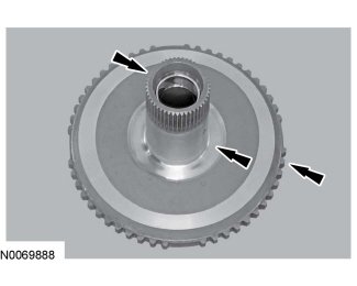 7. Clean and inspect the front planetary carrier hub for damage or wear and install new, if necessary.