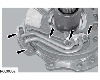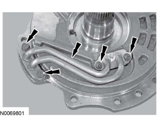 8. Tighten the 2 stator support feed tube Torx head bolts.