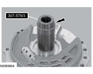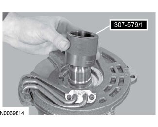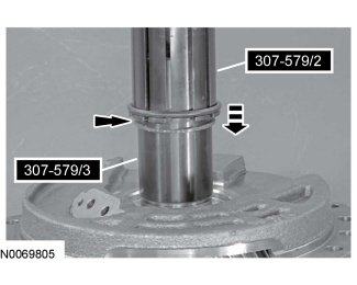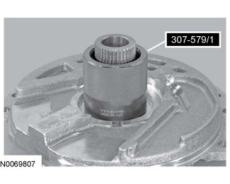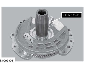 3. Install the Support Solid Seal Installer 307-579/2 on the Support Solid Seal Installer 307-579/3 and slide the seal in to the groove on the stator support assembly.