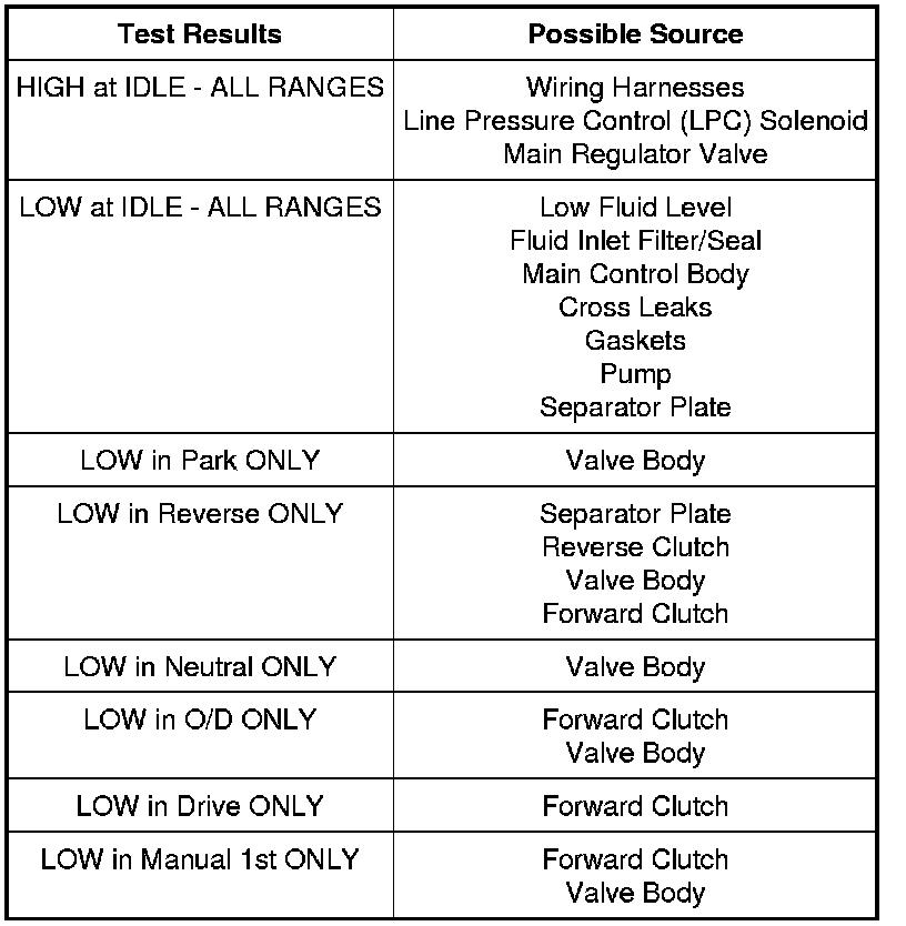 Line Pressure Diagnosis Chart