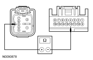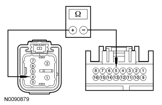 - Measure the resistance between LH front window motor C524-4, circuit CPW11 (BU/GY), harness side and LH front window control switch C504-5, circuit CPW11 (BU/GY), harness side.