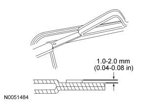 Using an appropriate tool, trim the urethane adhesive leaving a 1 mm to 2 mm (0.04 in to 0.08 in) base of original equipment urethane adhesive on the pinchweld.
