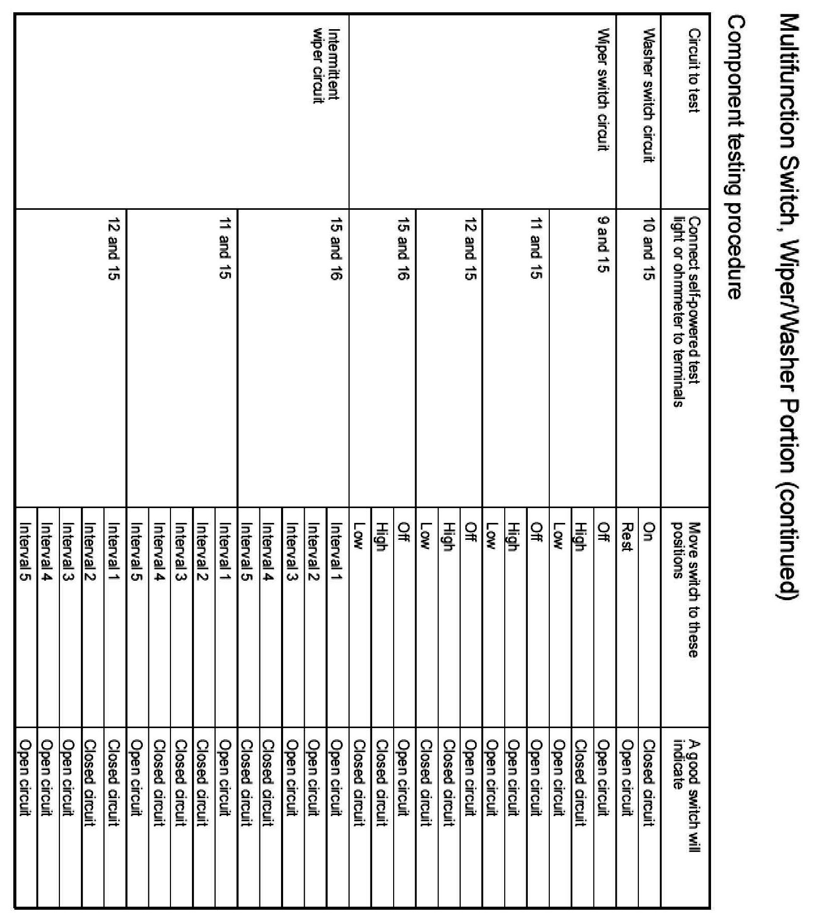Windshield Washer Switch: Testing and Inspection