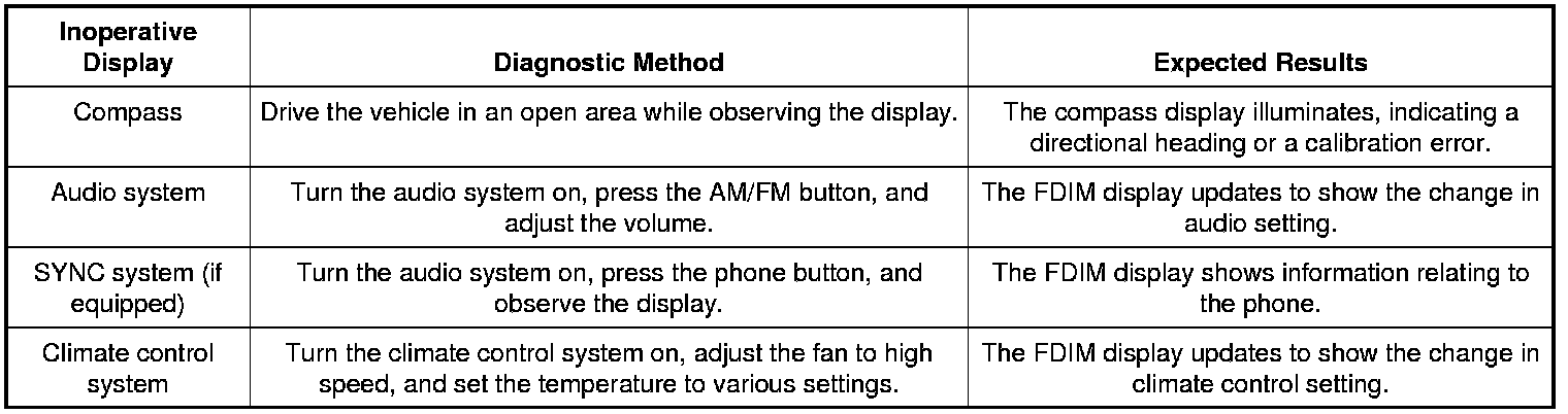 For the compass display, this pinpoint test is intended to diagnose a concern of the compass display being blank. For any other concerns with the compass display, including the compass being inaccurate, refer to Electronic Compass Testing and Inspection.
