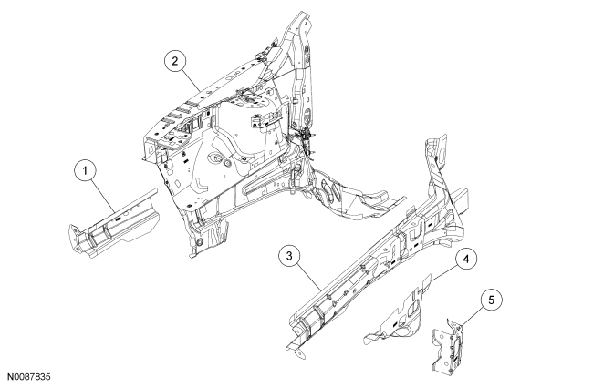 NOTE: Observe prescribed welding procedures when carrying out any repair to unibody/frame structure. For additional information, refer to Welding Precautions - Steel .