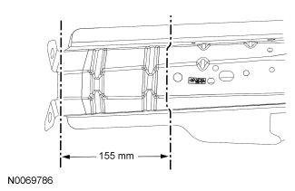 - Scribe a cut-line 40 mm (1.57 in) to 50 mm (1.96 in) rearward of the initial frame rail cut, on the outer portion of the rail assembly. Using a cut-off wheel or equivalent, cut and remove that portion of outer rail only, this will create an overlap joint.