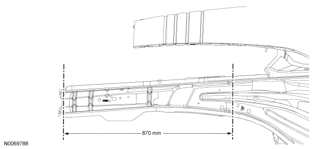 2. Position the vehicle on a frame repair rack following the manufacturer's recommendations. Measure the vehicle to determine if the body requires straightening and alignment. If necessary, rough pull the vehicle to restore the vehicle to pre-accident dimensions. For additional dimensional information, refer to Body .