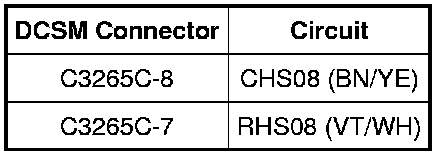 NOTICE: When taking measurements at Dual Climate Controlled Seat Module (DCSM) harness connectors, do not insert the electrical probes into the female connector pins. Inserting the probes into connector pins can cause intermittent or open electrical connections after reassembly resulting in Diagnostic Trouble Codes (DTCs) and system failure. Touching the tip of these connector pins is recommended instead.