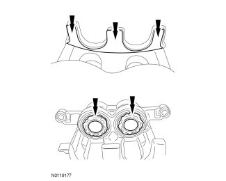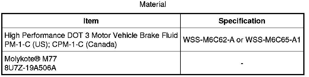 NOTE: If reusing the existing brake pads, be sure to apply equal amounts of the specified lubricant (8U7Z-19A506-A) to the caliper-to-brake pad contact points.