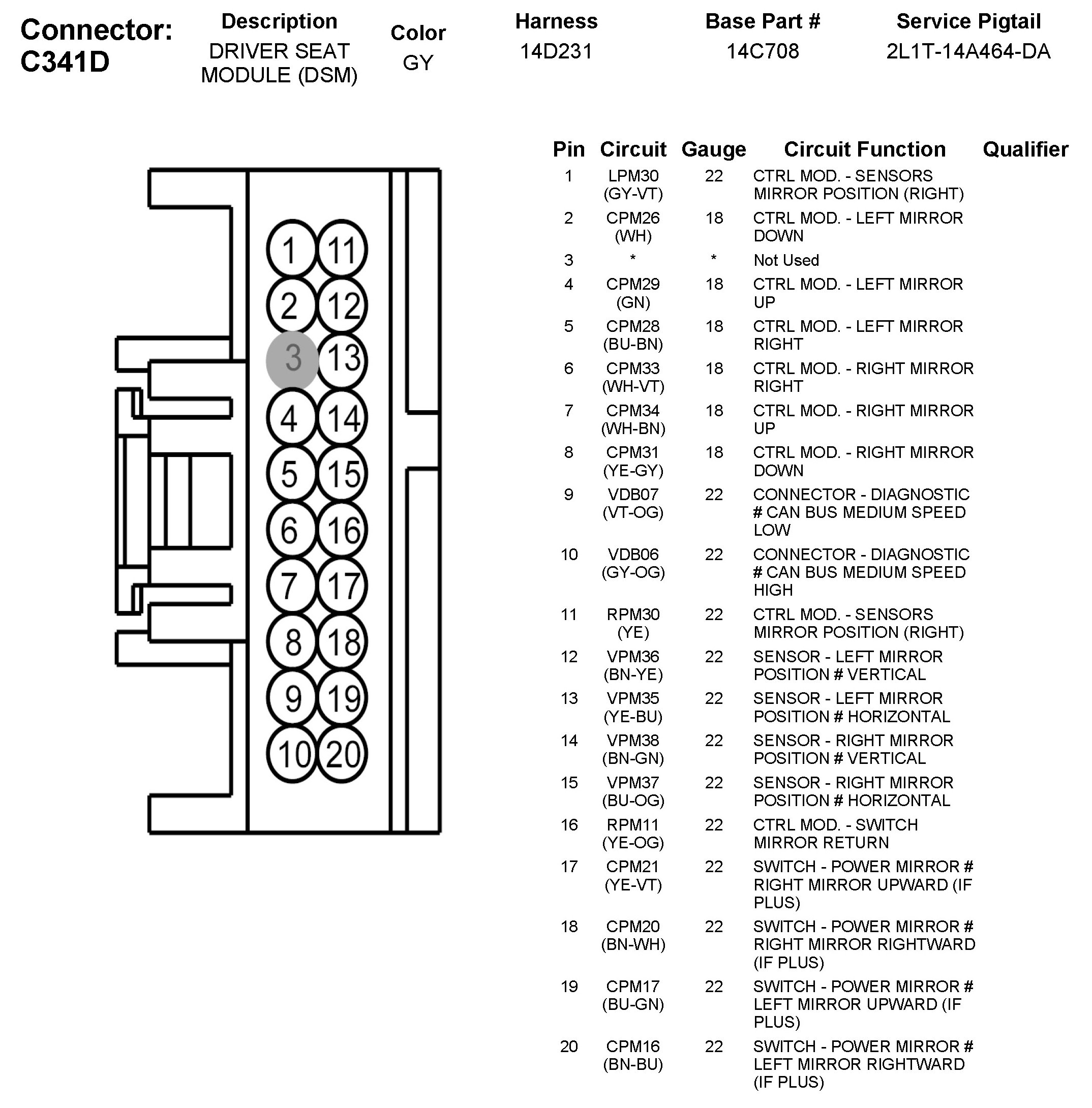 C341D Driver Seat Module (DSM)