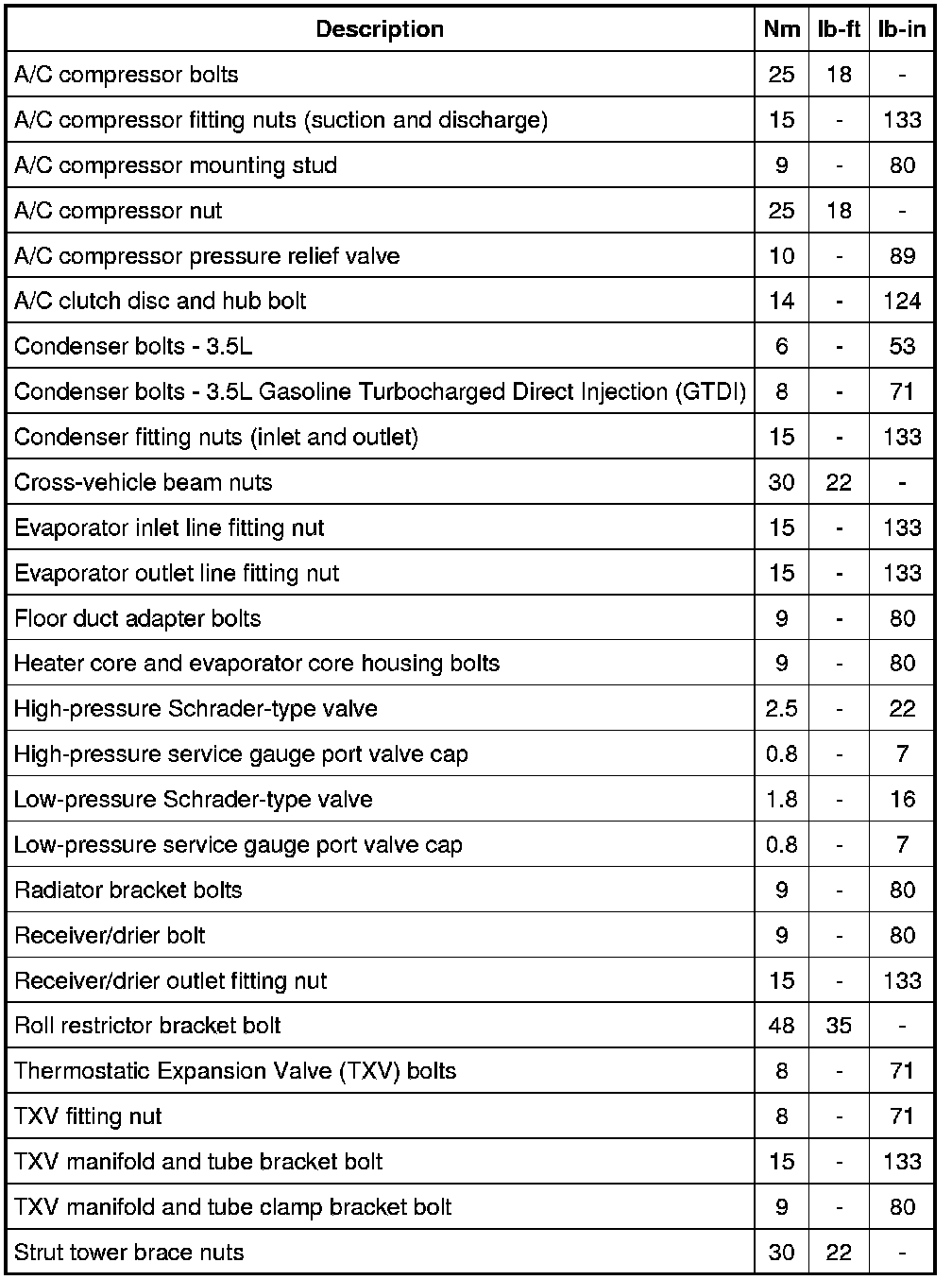 Torque Specifications