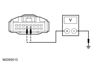 - Measure the voltage between the 4X4 control module C281-4, circuit CBP35 (YE/GY), harness side and ground; and between the 4X4 control module C281-5, circuit SBP11 (BU/RD), harness side and ground.