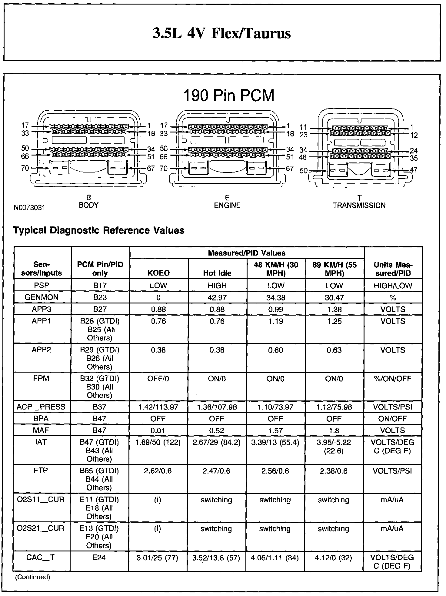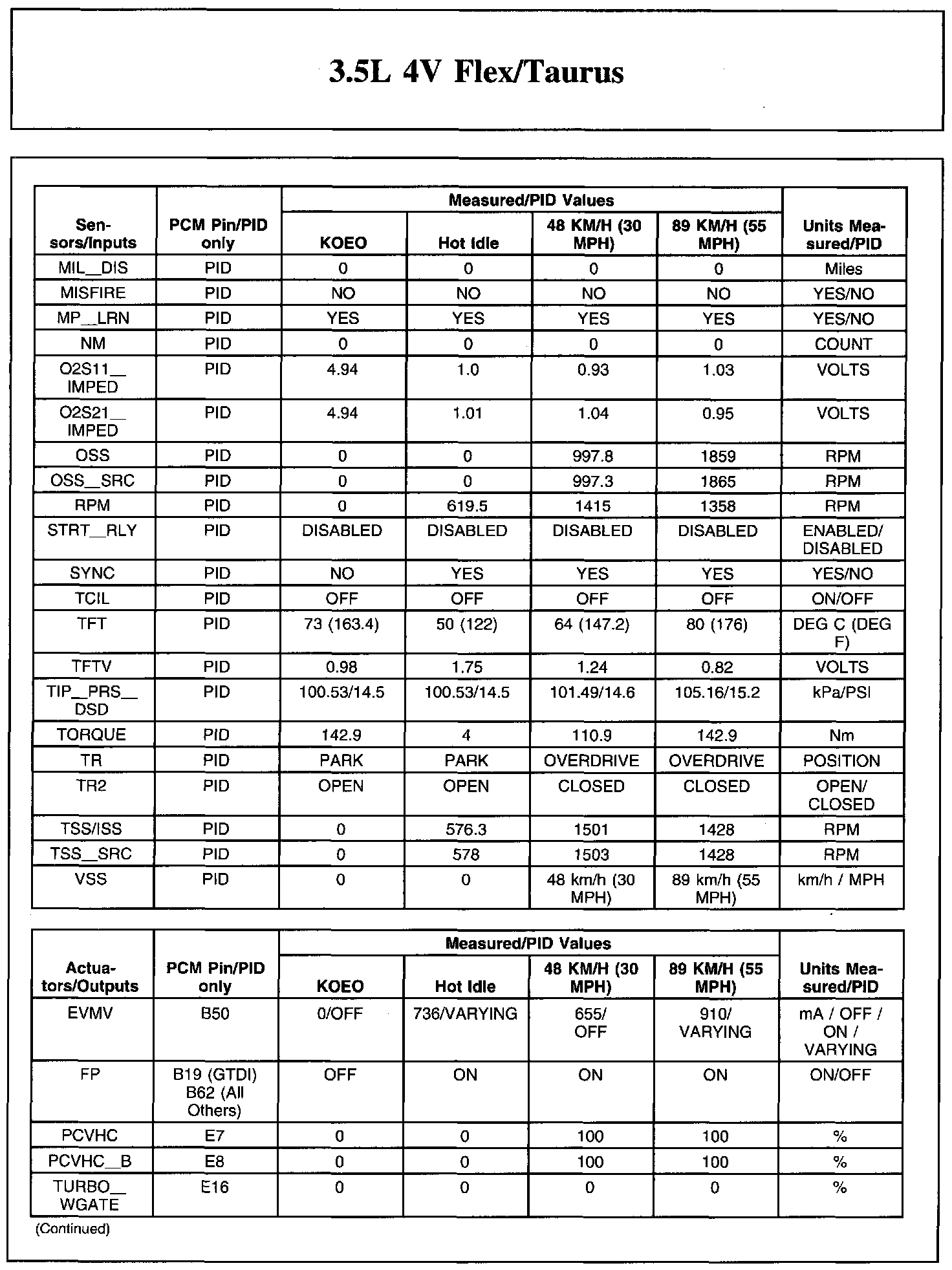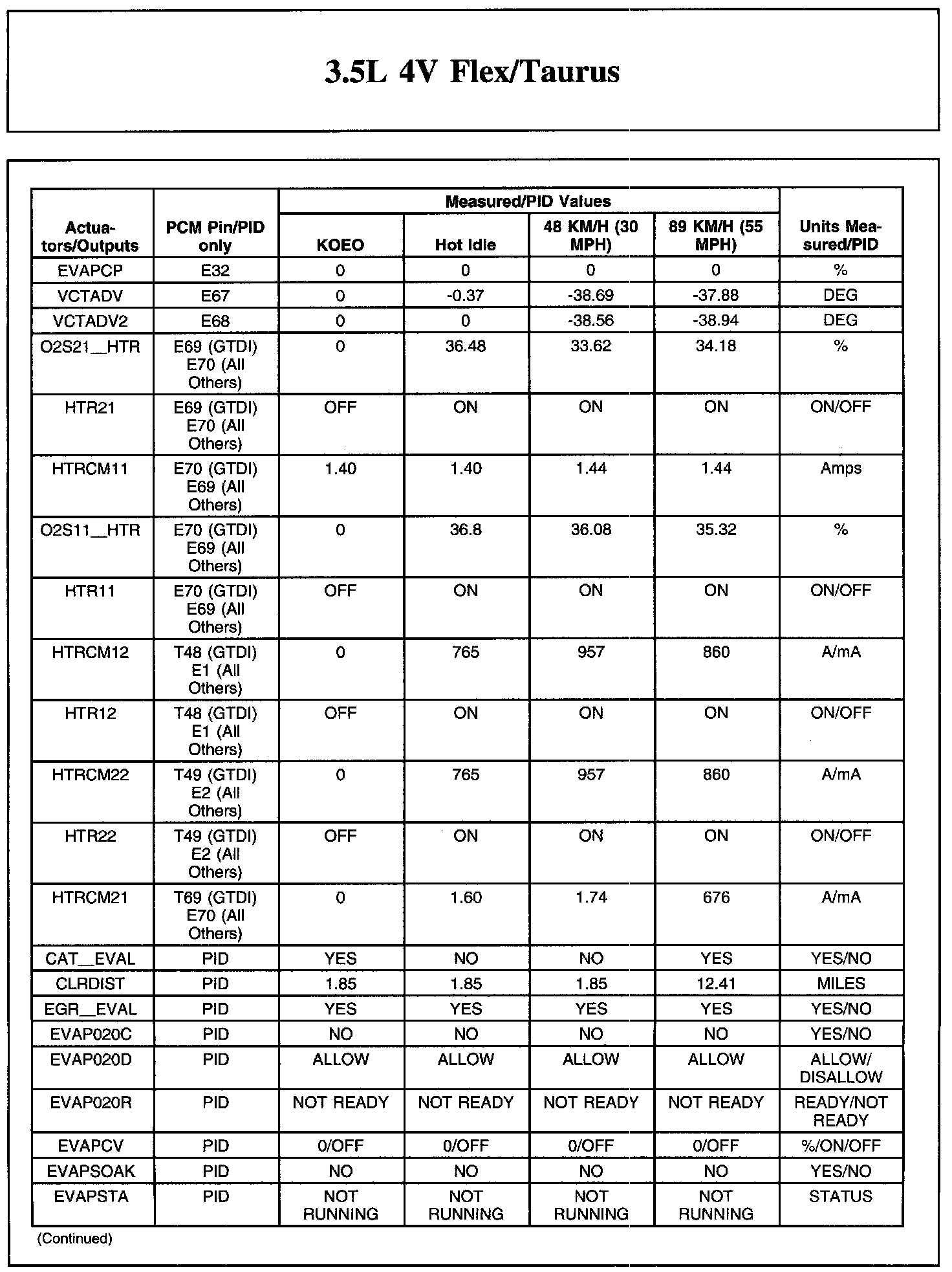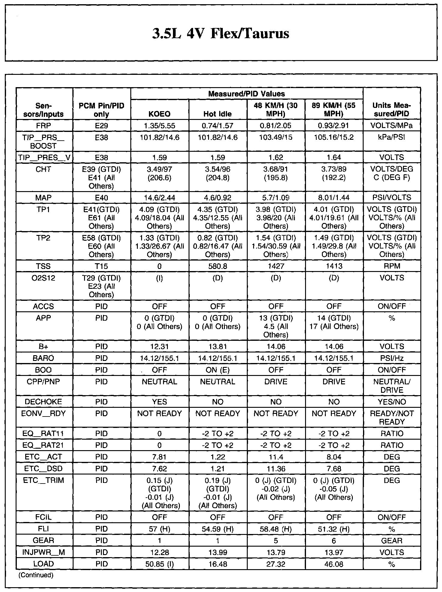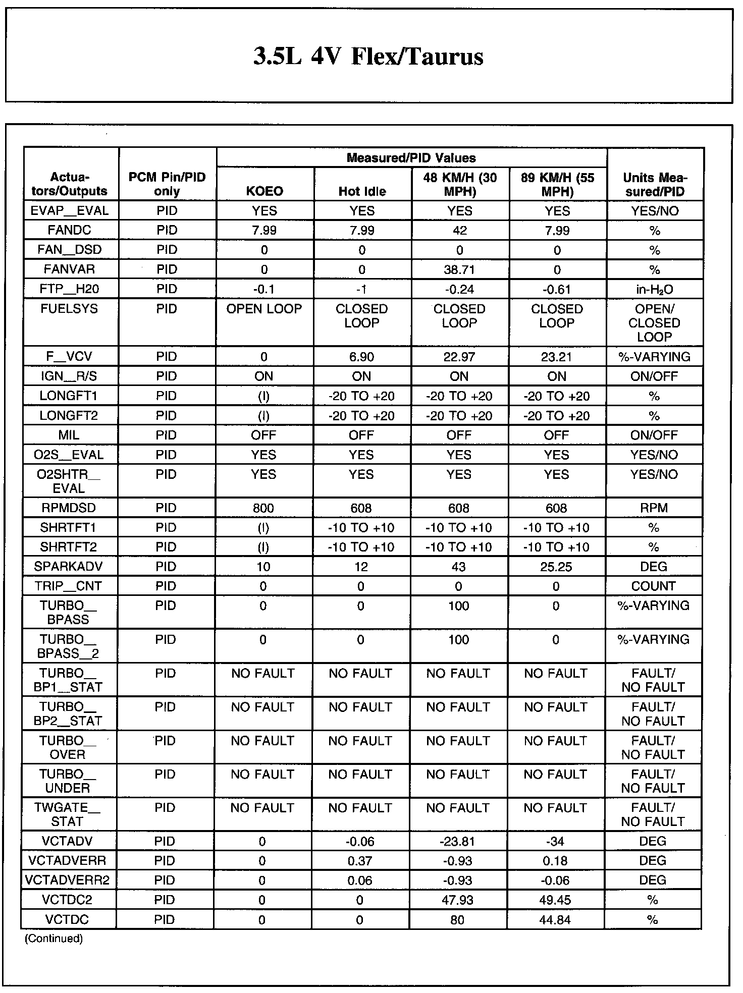 The Typical Diagnostic Reference Value Charts do not display fault parameter identifications (PIDs). These are PIDs which indicate a hard fault with the circuit. They display a value of YES or NO and are PIDs ending with the letter F.