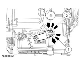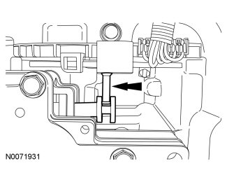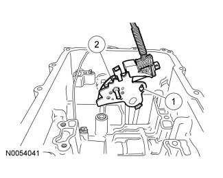 11. NOTICE: Make sure that the park pawl actuator rod does not become disengaged from the park pawl and the abutment, or transaxle removal and disassembly is required to reinstall the actuator rod.