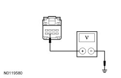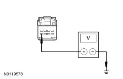 - Measure the voltage between the FCIM (Front Controls Interface Module) C2402-7, circuit VDB21 (OG), harness side and ground.