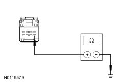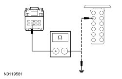 - Measure the resistance between the FCIM (Front Controls Interface Module) C2402-5, circuit GD115 (BK/GY), harness side and ground.