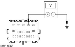 - Measure the voltage between the RFA (Remote Function Actuator) module C3503A-2, circuit SBP14 (BN/RD), harness side and ground.