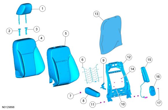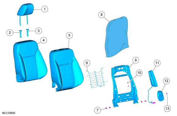 NOTE: Refer to Seat Backrest - Front Seat Backrest - Front for recliner-to-seat track bolt and side air bag module nut tightening sequence and torque specification.