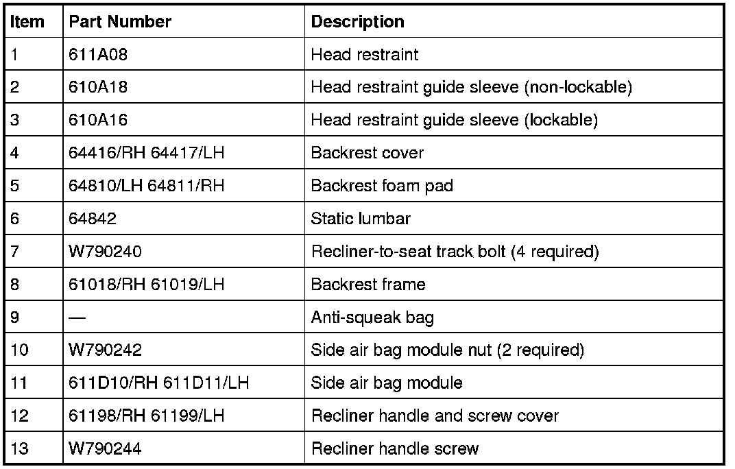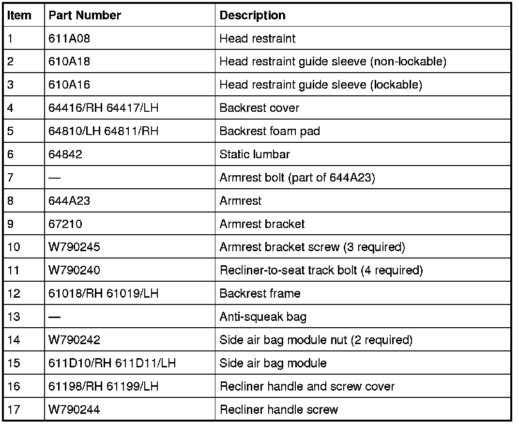 NOTE: For passenger seat cushion Occupant Classification System (OCS) system components, refer to Restraints and Safety Systems &/or Air Bag Systems.