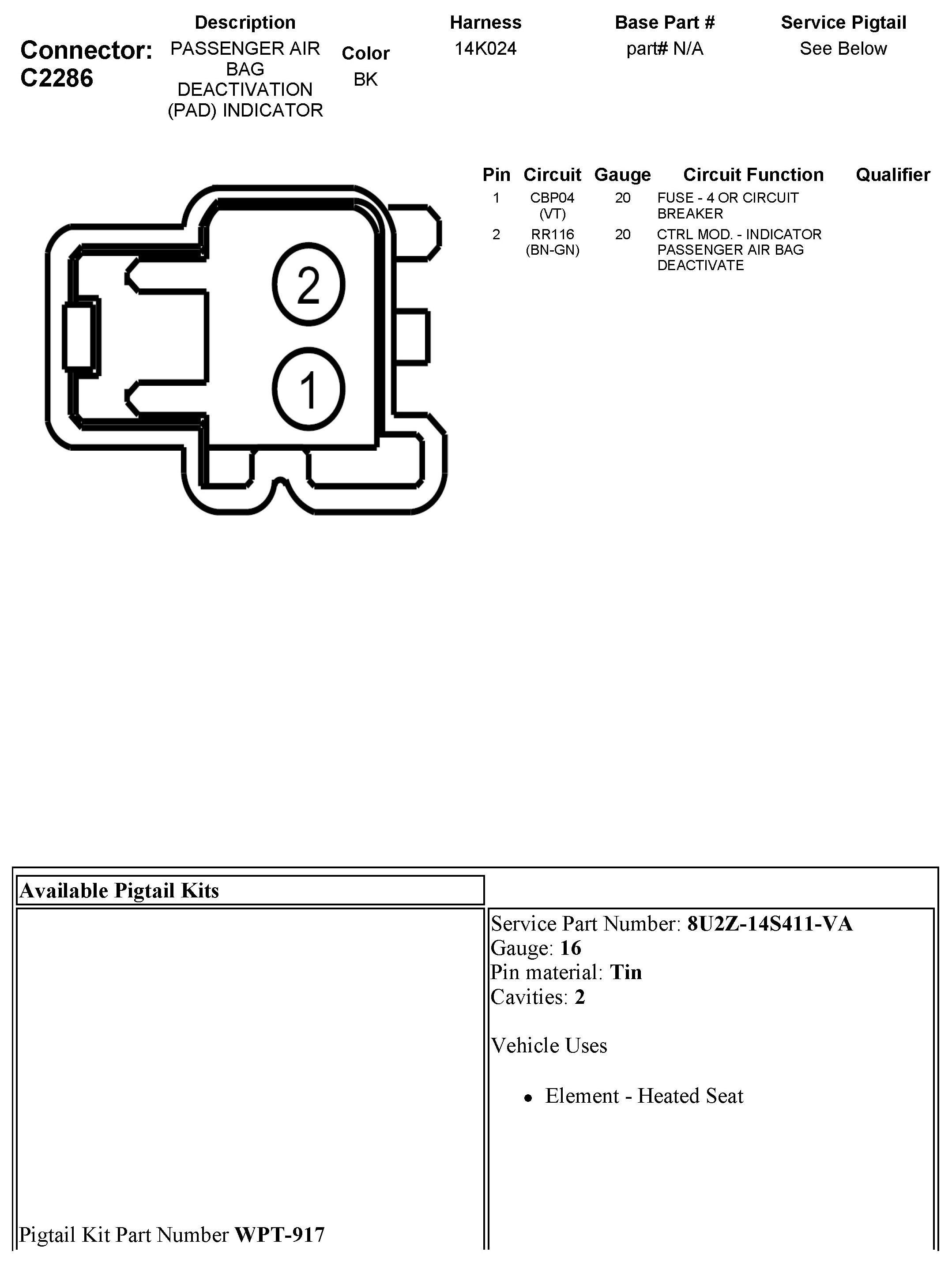 Air Bag Deactivation Indicator