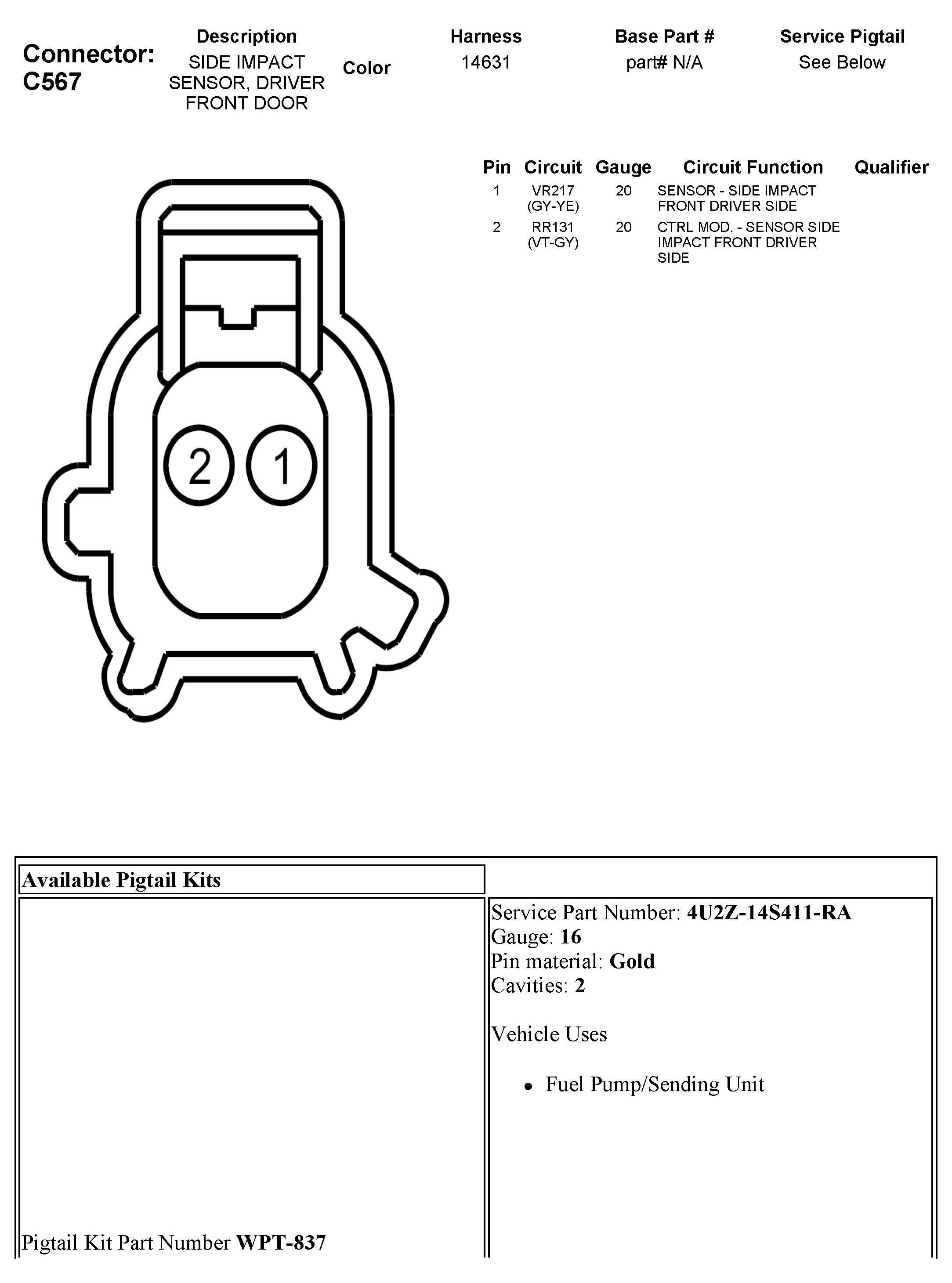 C567 Side Impact Sensor, Driver Front Door