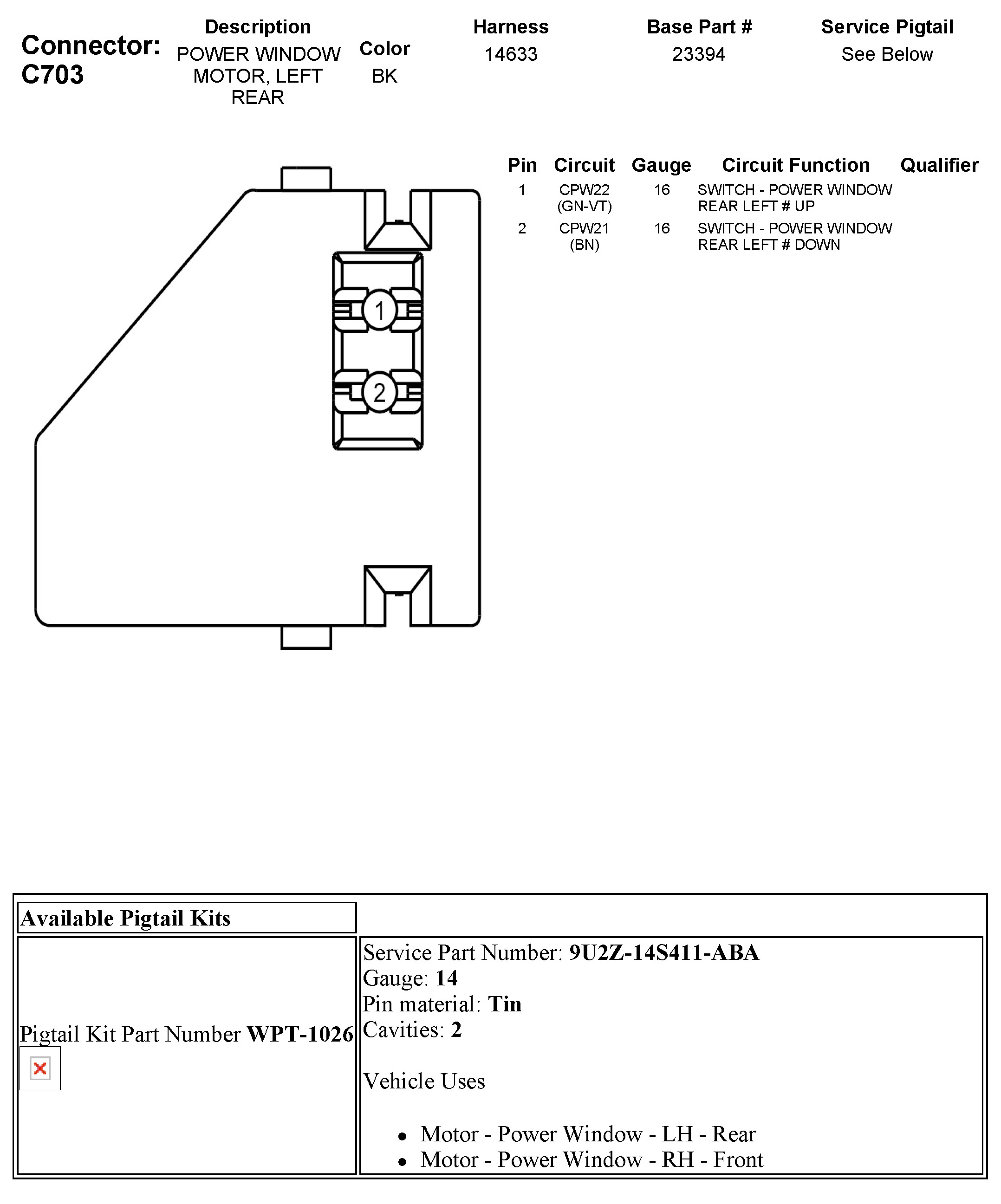 C703 Power Window Motor, Left Rear
