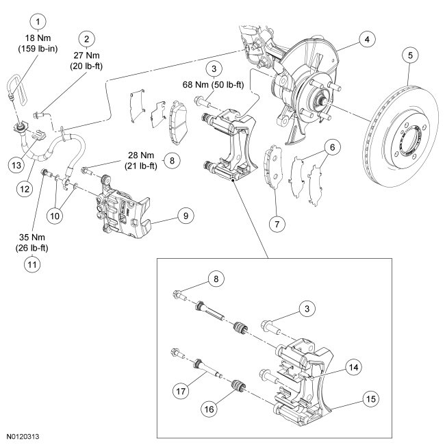 NOTE: If installing new brake pads, install all of the new hardware and lubricant supplied with the brake pad kit.