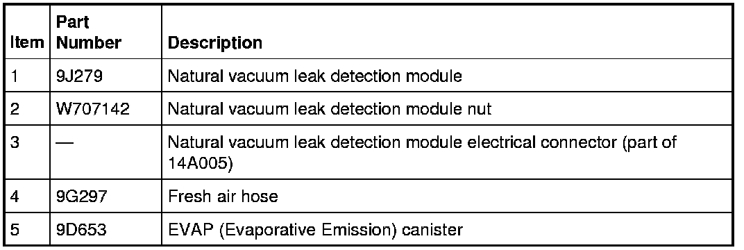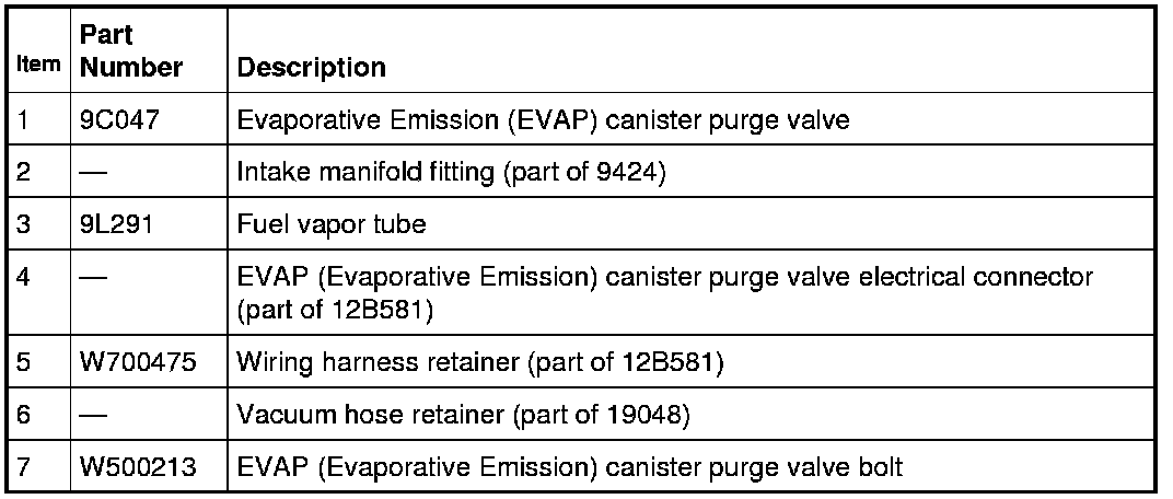 NOTE: After installing an Evaporative Emission (EVAP) canister or Evaporative Emission (EVAP) canister purge valve, carry out the Evaporative Emission System Leak Test. For additional information, refer to Evaporative Emission System Leak Test Testing and Inspection.