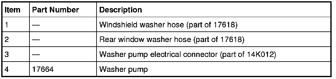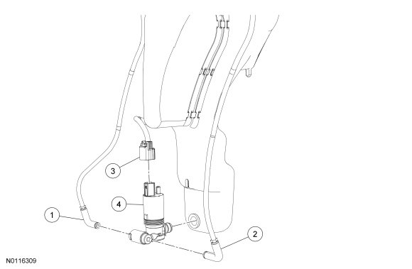 5 door washer pump shown, 4 door washer pump similar.
