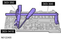 NOTICE: During engine repair procedures, cleanliness is extremely important. Any foreign material, including any material created while cleaning gasket surfaces, that enters the oil passages, coolant passages or the oil pan can cause engine failure.