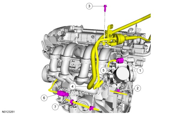 4. Position and connect the EVAP (Evaporative Emission) canister purge valve tube to the intake manifold.