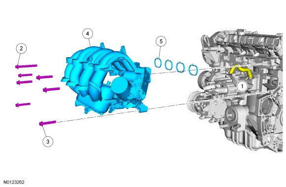 NOTICE: If the engine is repaired or replaced because of upper engine failure, typically including valve or piston damage, check the intake manifold for metal debris. If metal debris is found, install a new intake manifold. Failure to follow these instructions can result in engine damage.