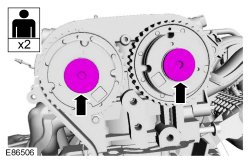 37. If removed, install the camshaft trigger wheels and the 2 bolts.