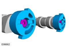 49. NOTICE: Use an open-ended wrench to hold the camshafts by the hexagon to prevent the camshafts from turning.