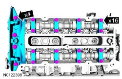 - Stage 1: Tighten the bolts evenly, half a turn at a time, until the camshaft bearing caps and the VCT (Variable Camshaft Timing) bridge are seated against the cylinder head.
