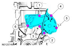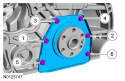 - Install the 6 bolts and tighten in sequence shown in 2 stages.