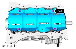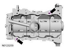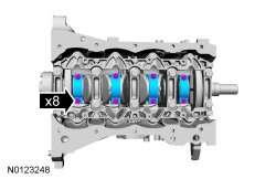 NOTICE: During engine repair procedures, cleanliness is extremely important. All parts must be thoroughly cleaned and any foreign material, including any material created while cleaning gasket surfaces, that enters the oil passages, coolant passages or the oil pan, can cause engine failure.