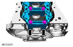 NOTE: Position the crankshaft to the rear of the cylinder block, then position the crankshaft to the front of the cylinder block before tightening the main bearing beam bolts.