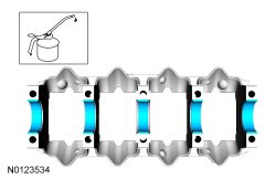 14. Lubricate the 10 main bearing beam side fit surfaces and the 5 main bearing beam bearings with clean engine oil.
