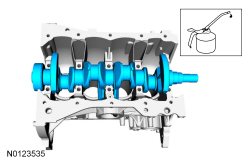 16. NOTE: Lubricate the main bearing beam bolts threads and under the bolt heads with clean engine oil.
