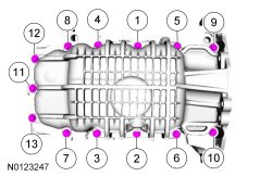 32. Tighten the oil pan bolts in the following sequence in 2 stages.