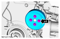 17. Tighten the 4 coolant pump pulley bolts to 20 Nm (177 lb-in).