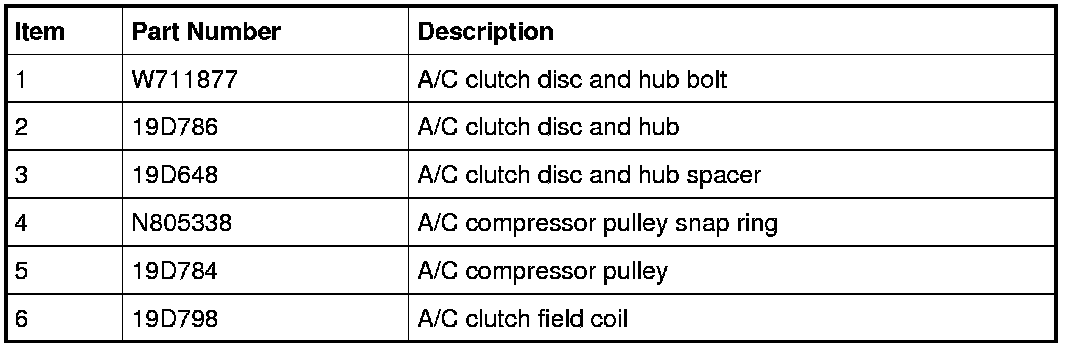 7. NOTICE: Do not use air tools. Damage to the Air Conditioning (A/C) clutch field coil or A/C compressor may result.
